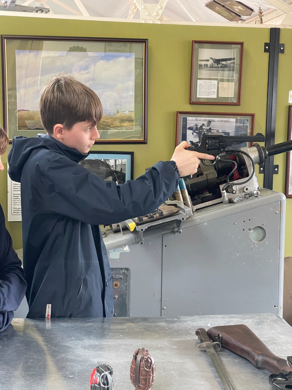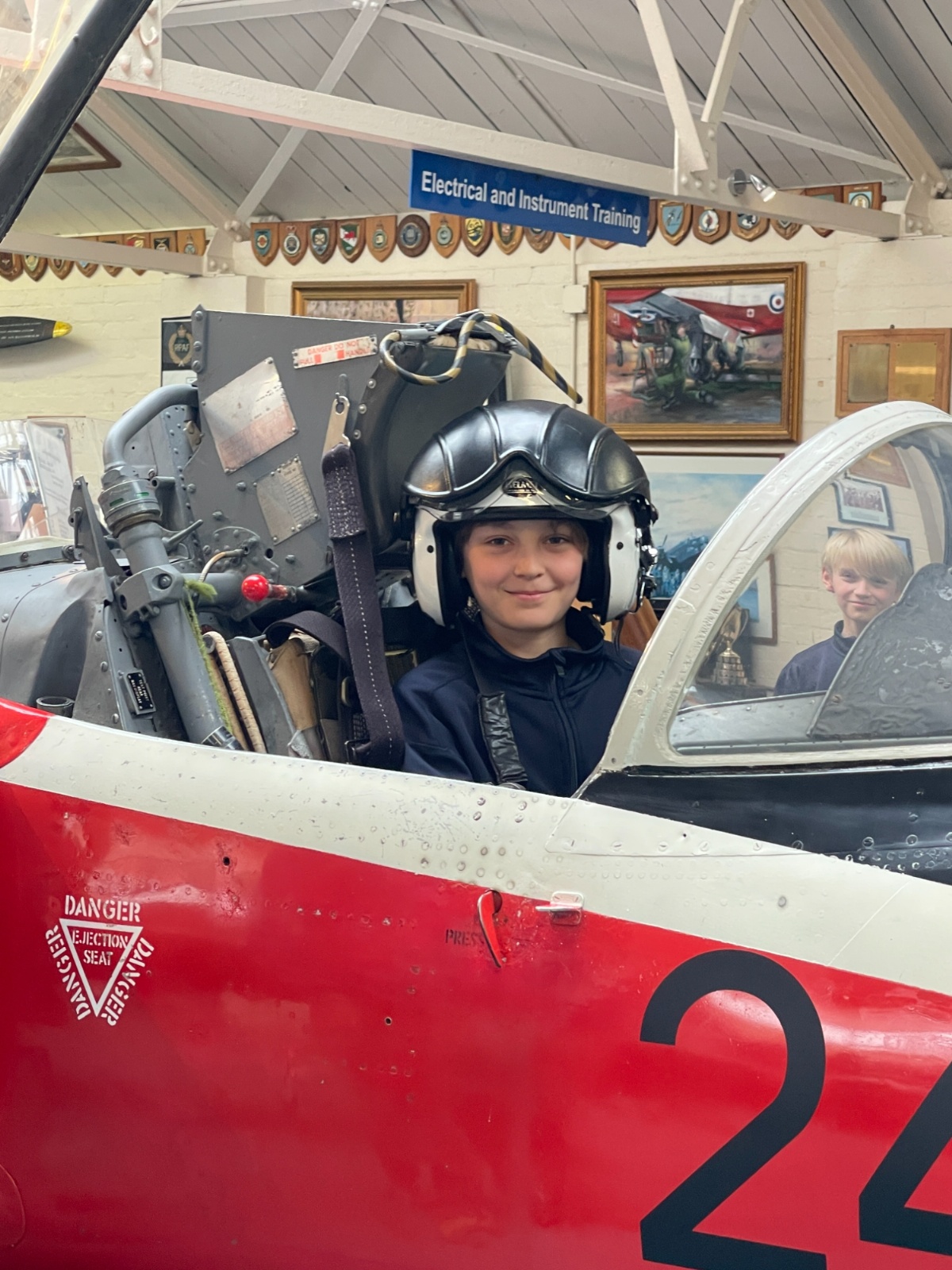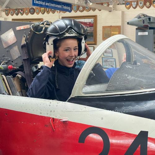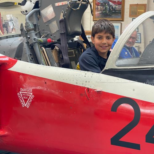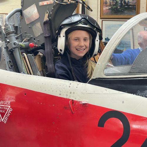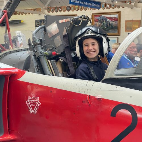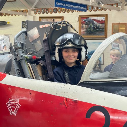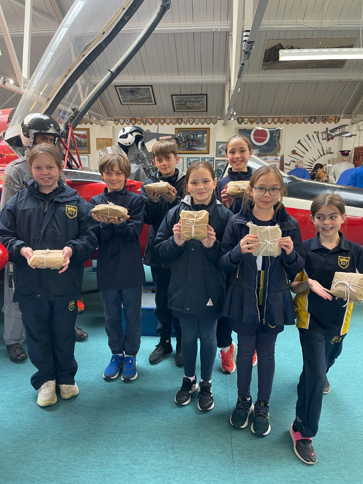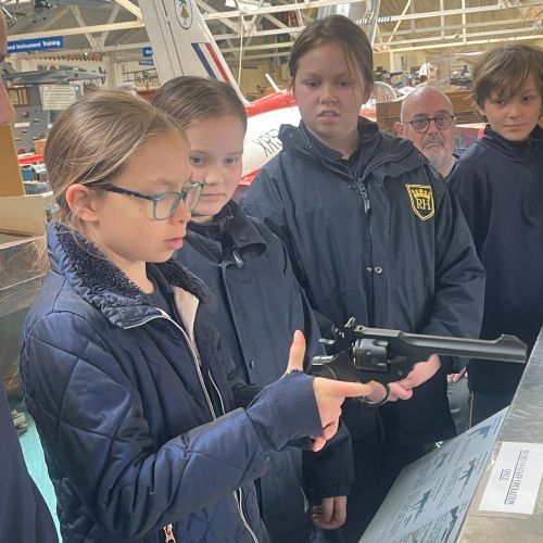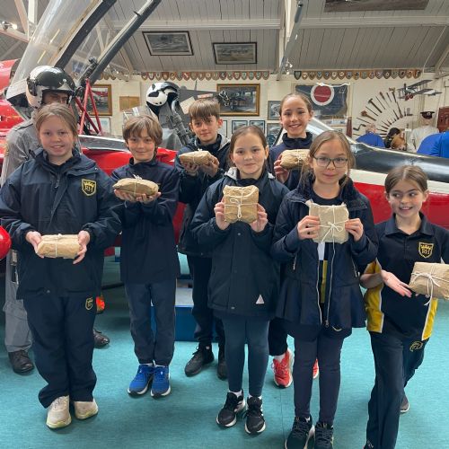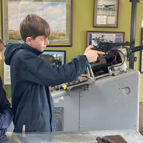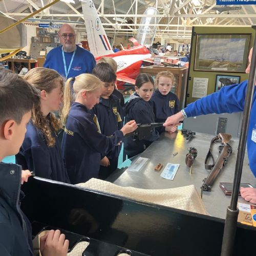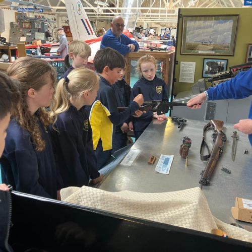 Splitting into smaller groups, they learned about life at home during the war (sending parcels, writing letters - and them being sensored from the troops - and the vital role that women played), the kit and food the soldiers would have carried, worn and eaten, how planes were constructed and the importance of precise engineering, and then the weapons used by British soldiers in training and combat. With the museum also being a treasure trove of military history up to modern times, the children were even able to sit in the cockpit of a Gnat jet (of Red Arrow fame) and wear a pilot's helmet.
