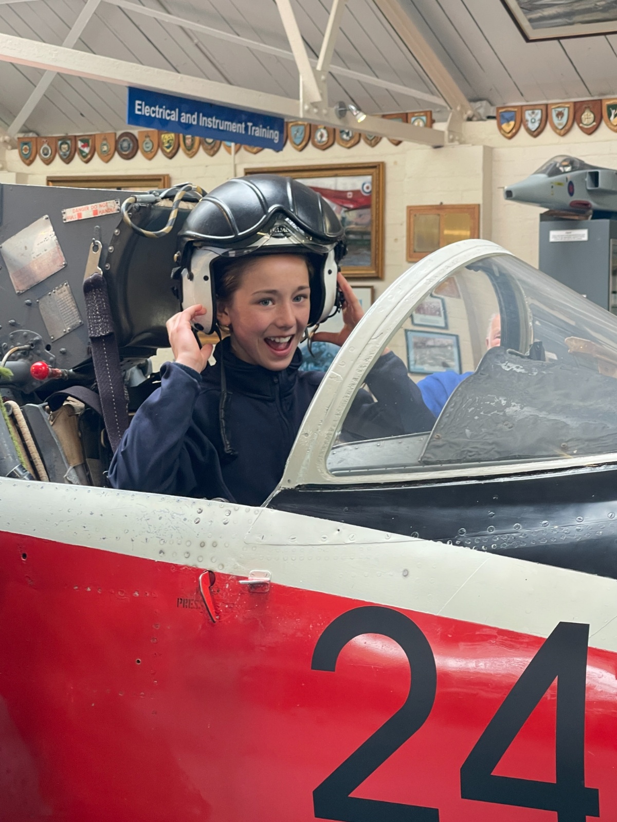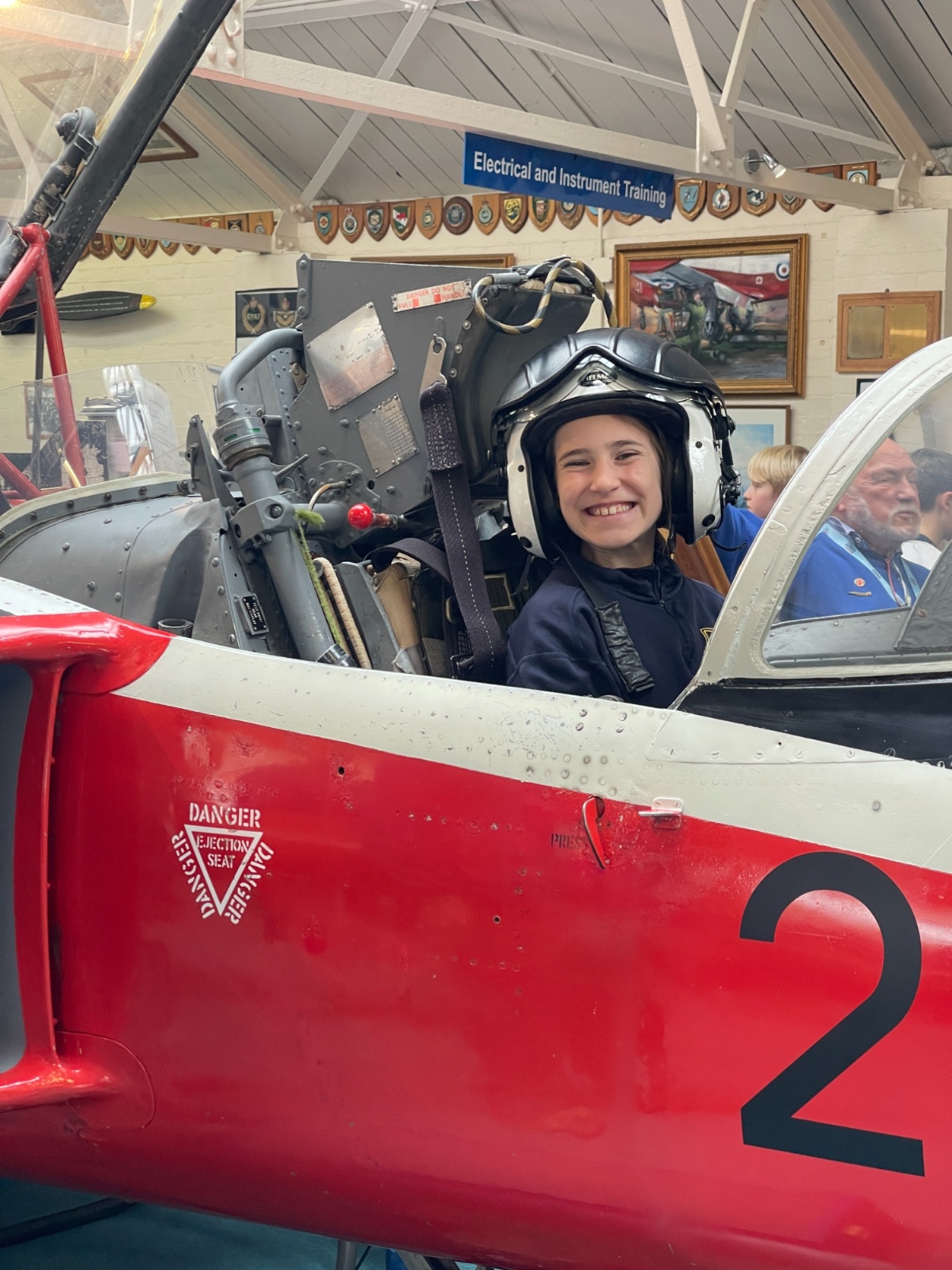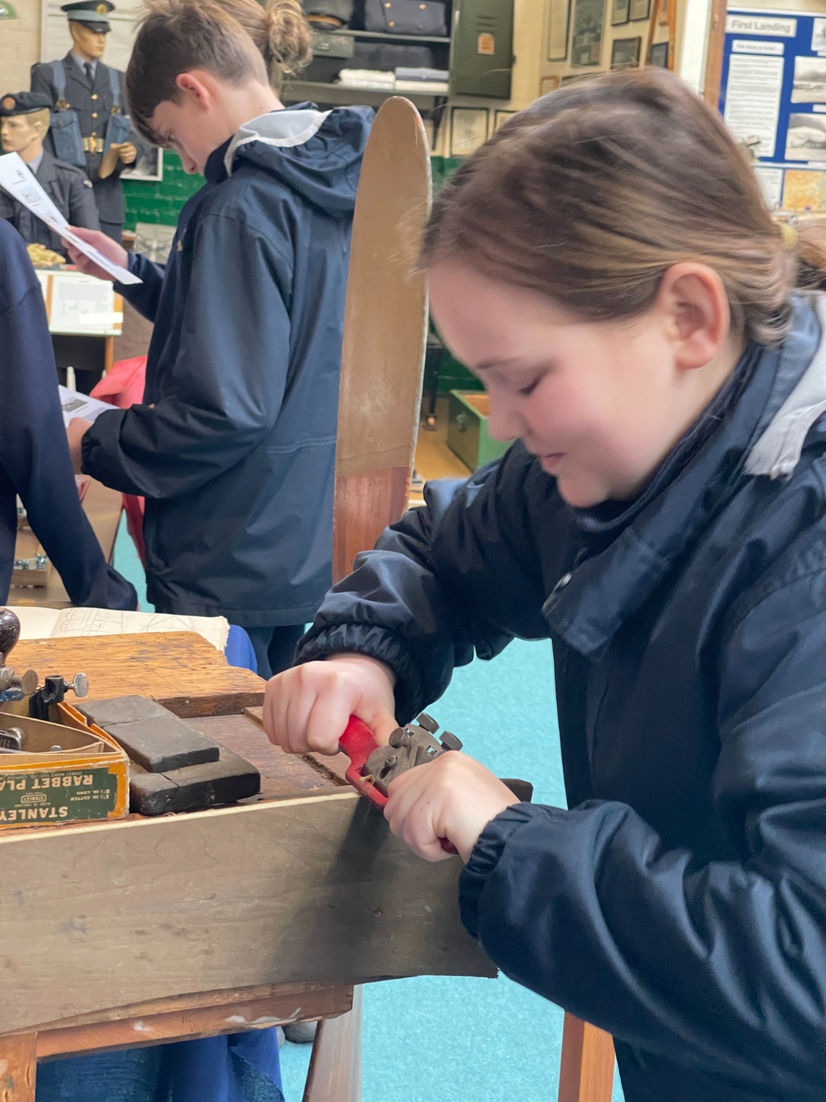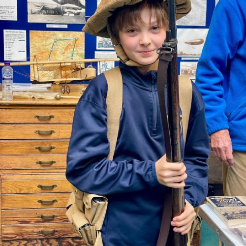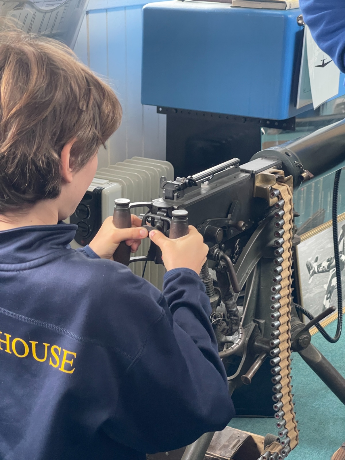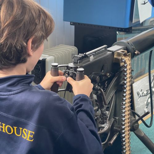 Splitting into smaller groups, they learned about life at home during the war (sending parcels, writing letters - and them being sensored from the troops - and the vital role that women played), the kit and food the soldiers would have carried, worn and eaten, how planes were constructed and the importance of precise engineering, and then the weapons used by British soldiers in training and combat. With the museum also being a treasure trove of military history up to modern times, the children were even able to sit in the cockpit of a Gnat jet (of Red Arrow fame) and wear a pilot's helmet.