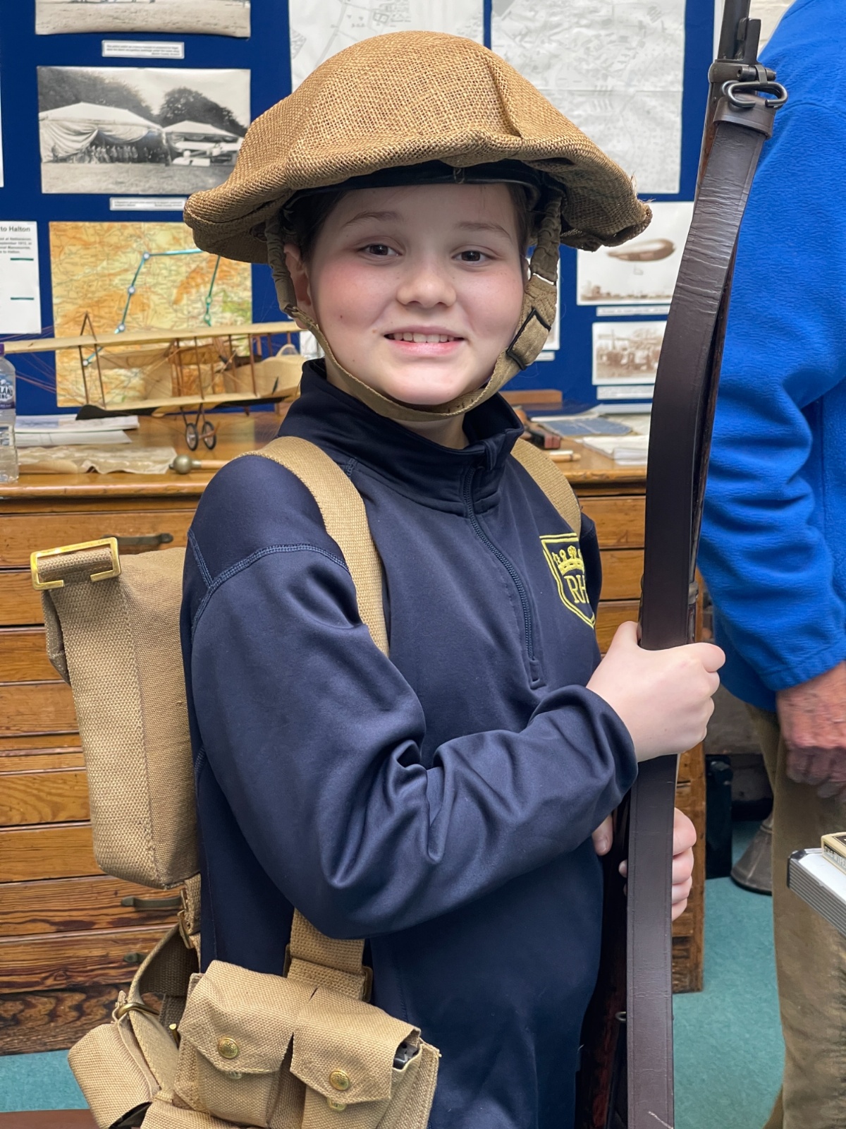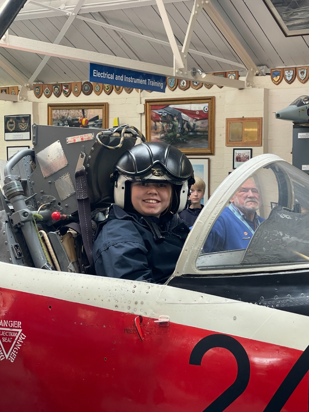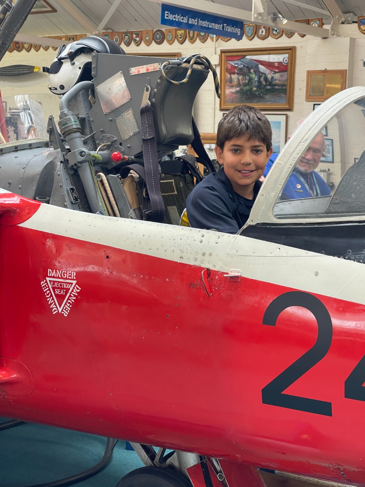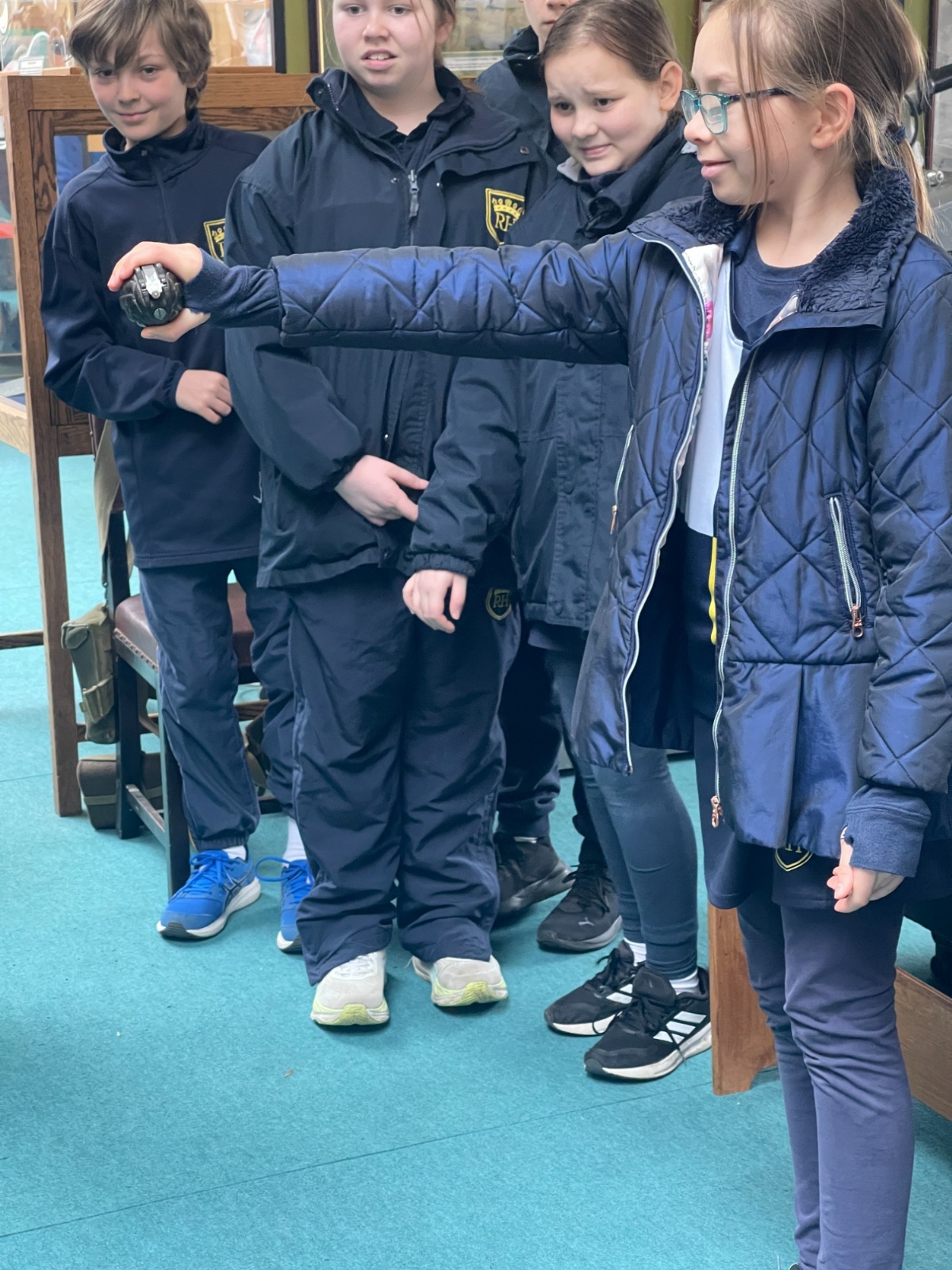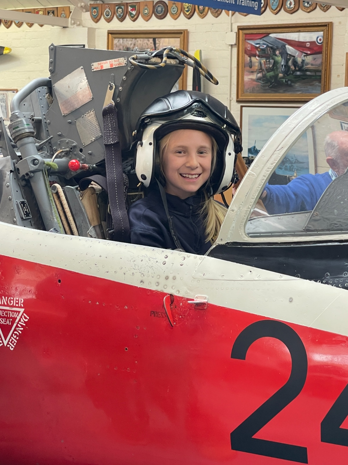 Splitting into smaller groups, they learned about life at home during the war (sending parcels, writing letters - and them being sensored from the troops - and the vital role that women played), the kit and food the soldiers would have carried, worn and eaten, how planes were constructed and the importance of precise engineering, and then the weapons used by British soldiers in training and combat. With the museum also being a treasure trove of military history up to modern times, the children were even able to sit in the cockpit of a Gnat jet (of Red Arrow fame) and wear a pilot's helmet.