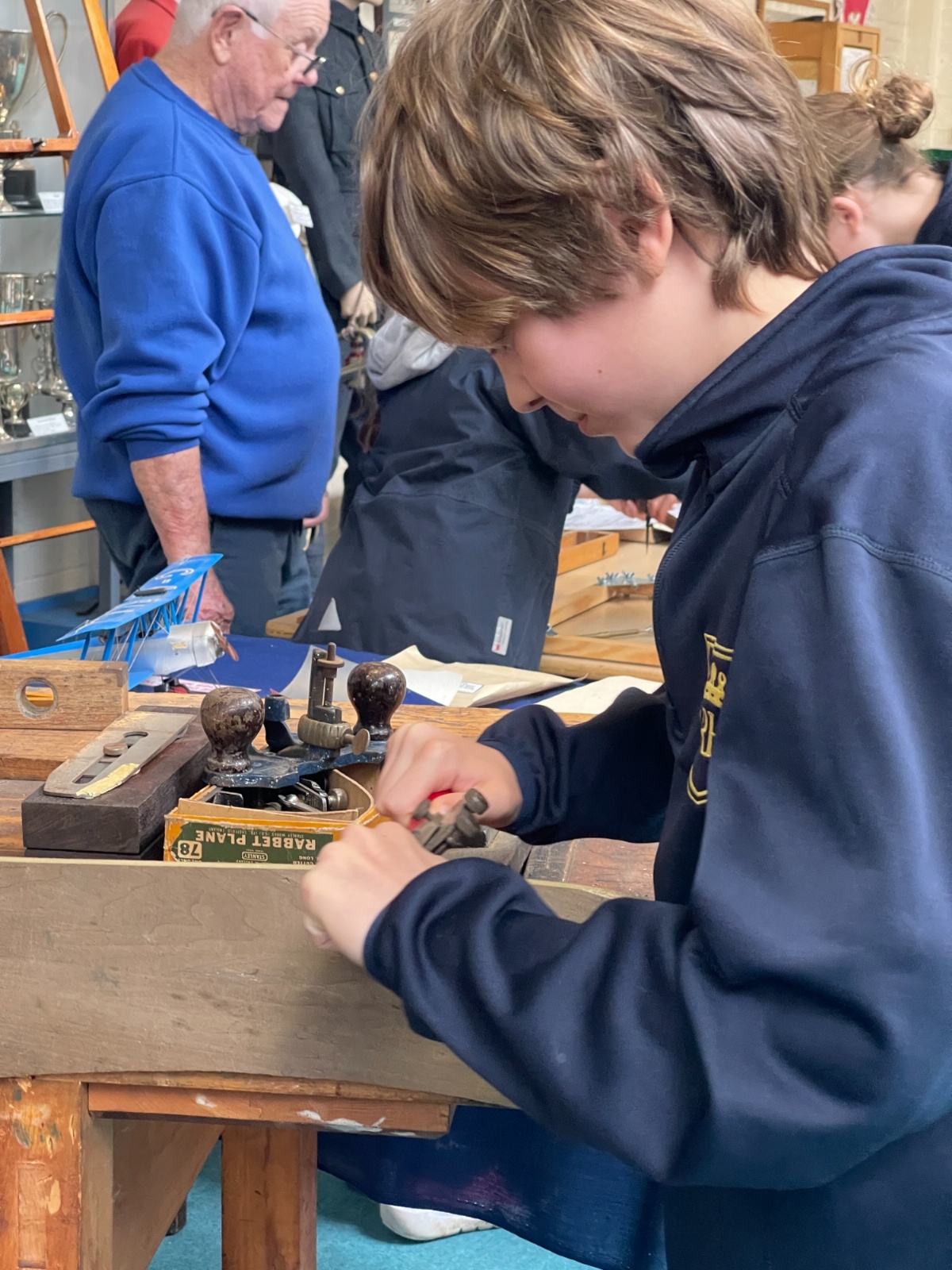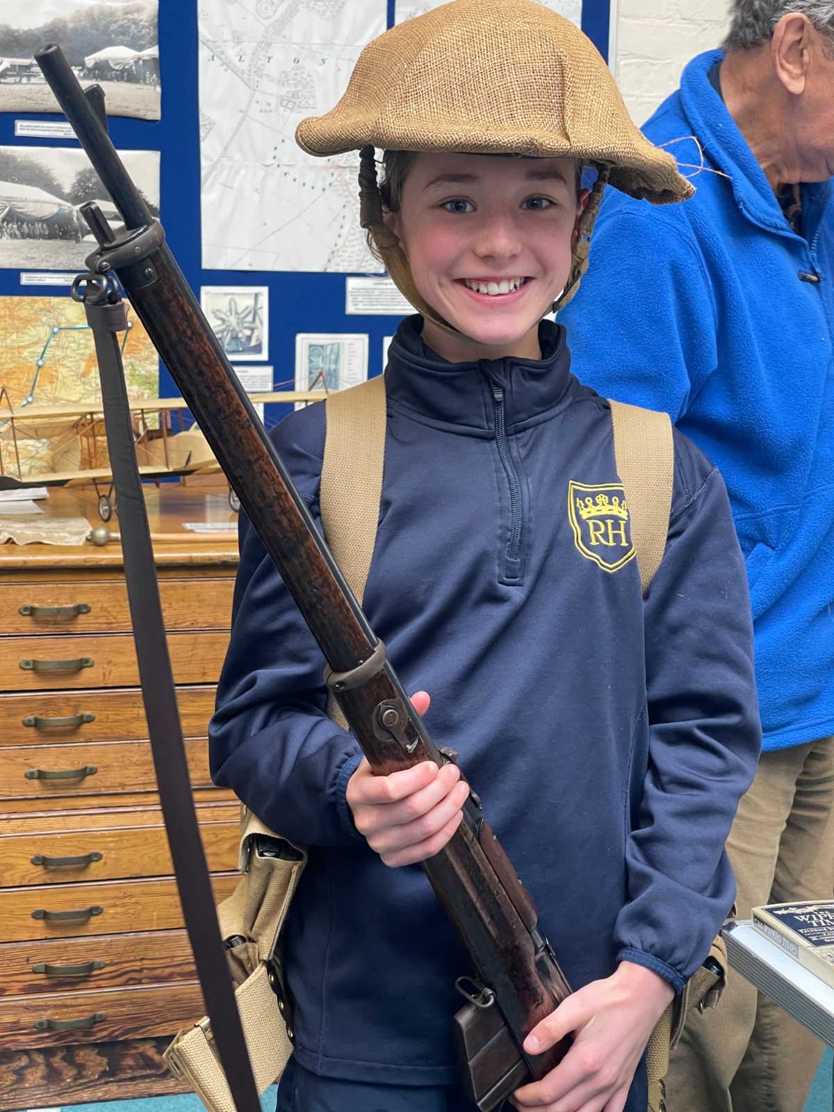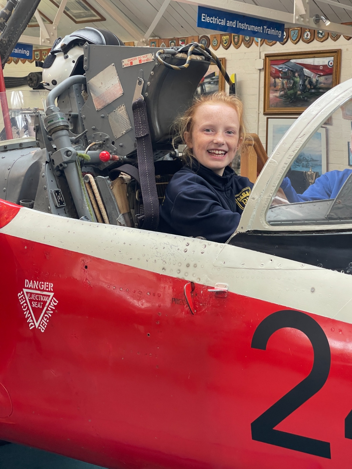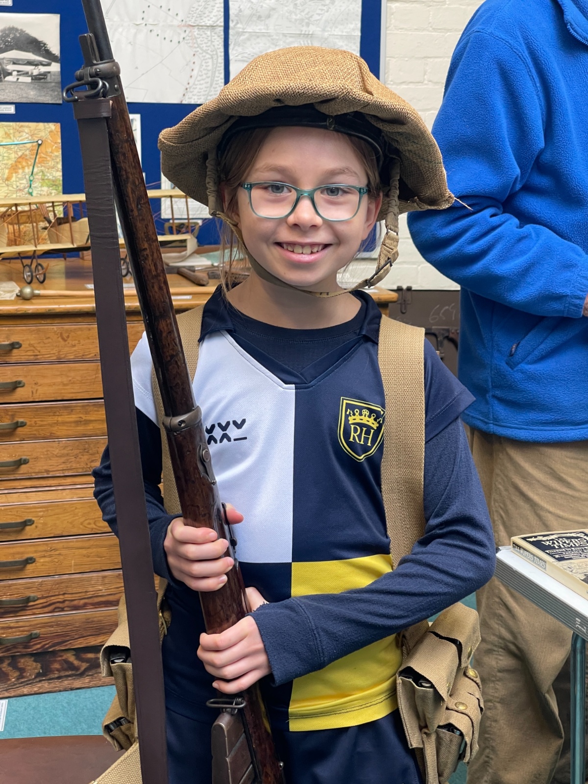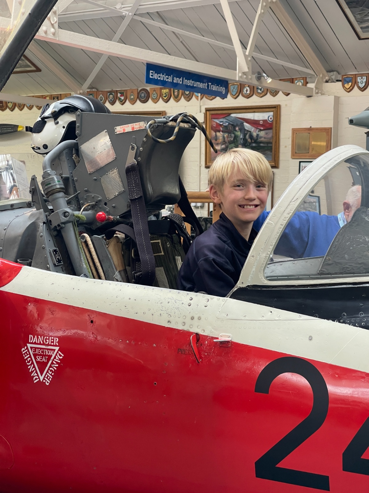 Splitting into smaller groups, they learned about life at home during the war (sending parcels, writing letters - and them being sensored from the troops - and the vital role that women played), the kit and food the soldiers would have carried, worn and eaten, how planes were constructed and the importance of precise engineering, and then the weapons used by British soldiers in training and combat. With the museum also being a treasure trove of military history up to modern times, the children were even able to sit in the cockpit of a Gnat jet (of Red Arrow fame) and wear a pilot's helmet.